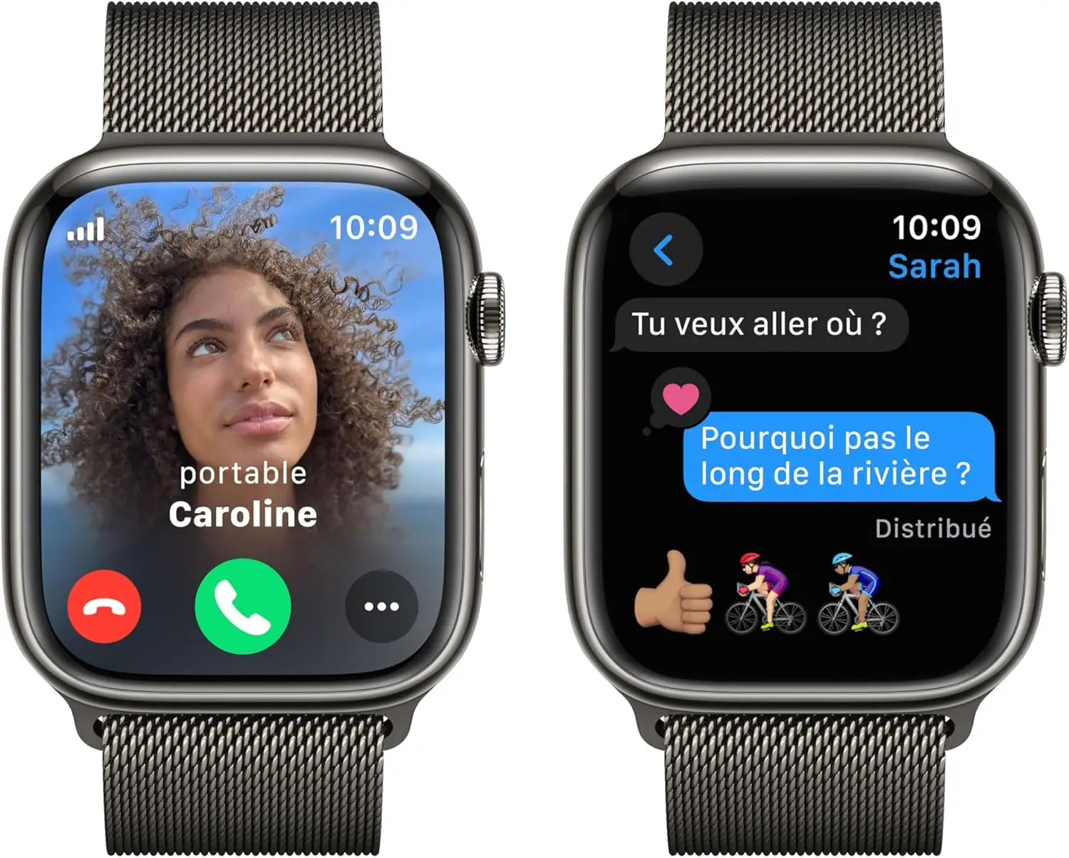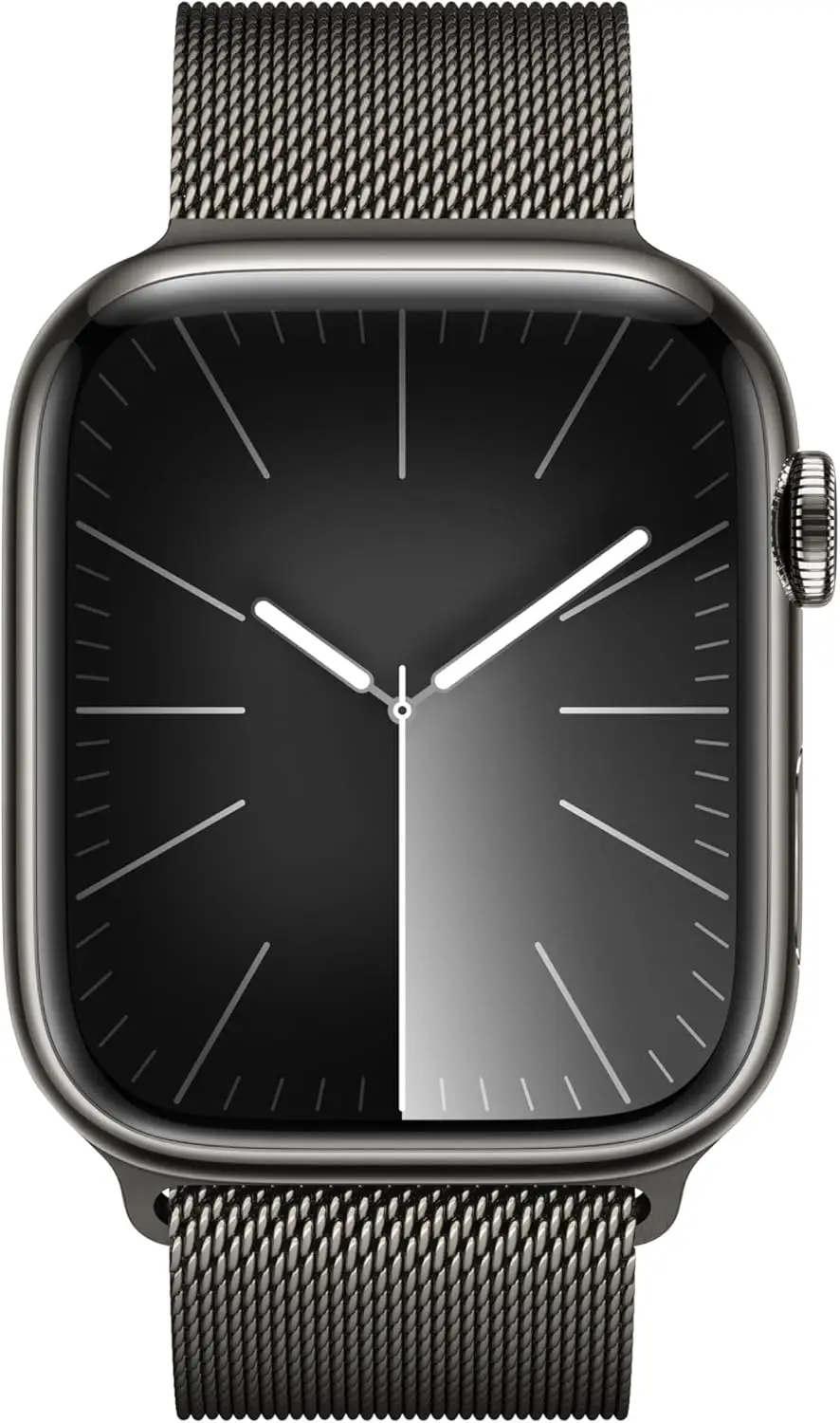 Apple Watch Series 9 (45 mm GPS + Cellular) Smartwatch avec boîtier en Acier Inoxydable et Bracelet Milanais Graphite. Suivi de l’activité Physique, apps Oxygène sanguin et ECG, résistance à l’Eau