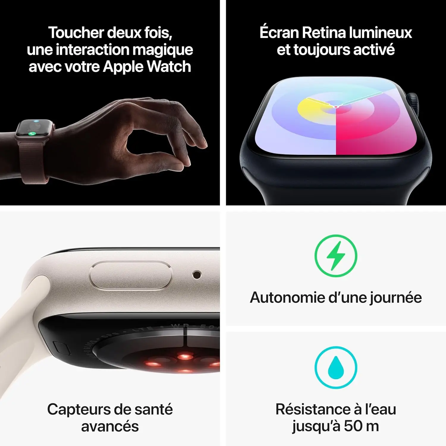 Style: Bracelet Milanais Couleur: Graphite Système d’exploitation watchOS Capacité de stockage de la mémoire 64 Go Caractéristique spéciale Contrôle vocal, Moniteur de fréquence cardiaque, Suivi du cycle, Tracker d’activité Technologie de connectivité Wi-Fi Norme de communication sans fil Bluetooth Composition de la pile Lithium-ion Forme Rectangulaire Taille de l’écran 45 Millimètres Marque Apple Nom de modèle Apple Watch Series 9